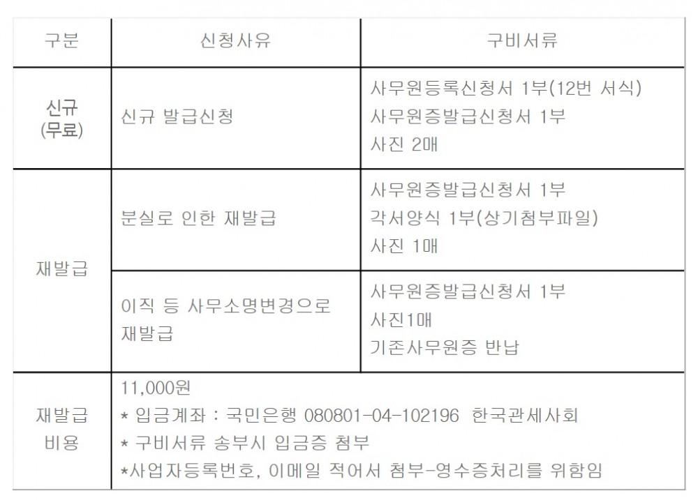 사무원, 사무원증 발급(재발급)신청 관련서식 안내